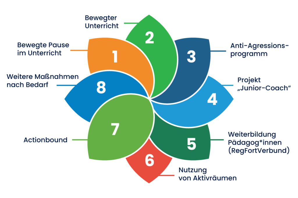 - Projekttage oder -wochen mit Fokus auf Bewegung, Prävention, Klassenklima