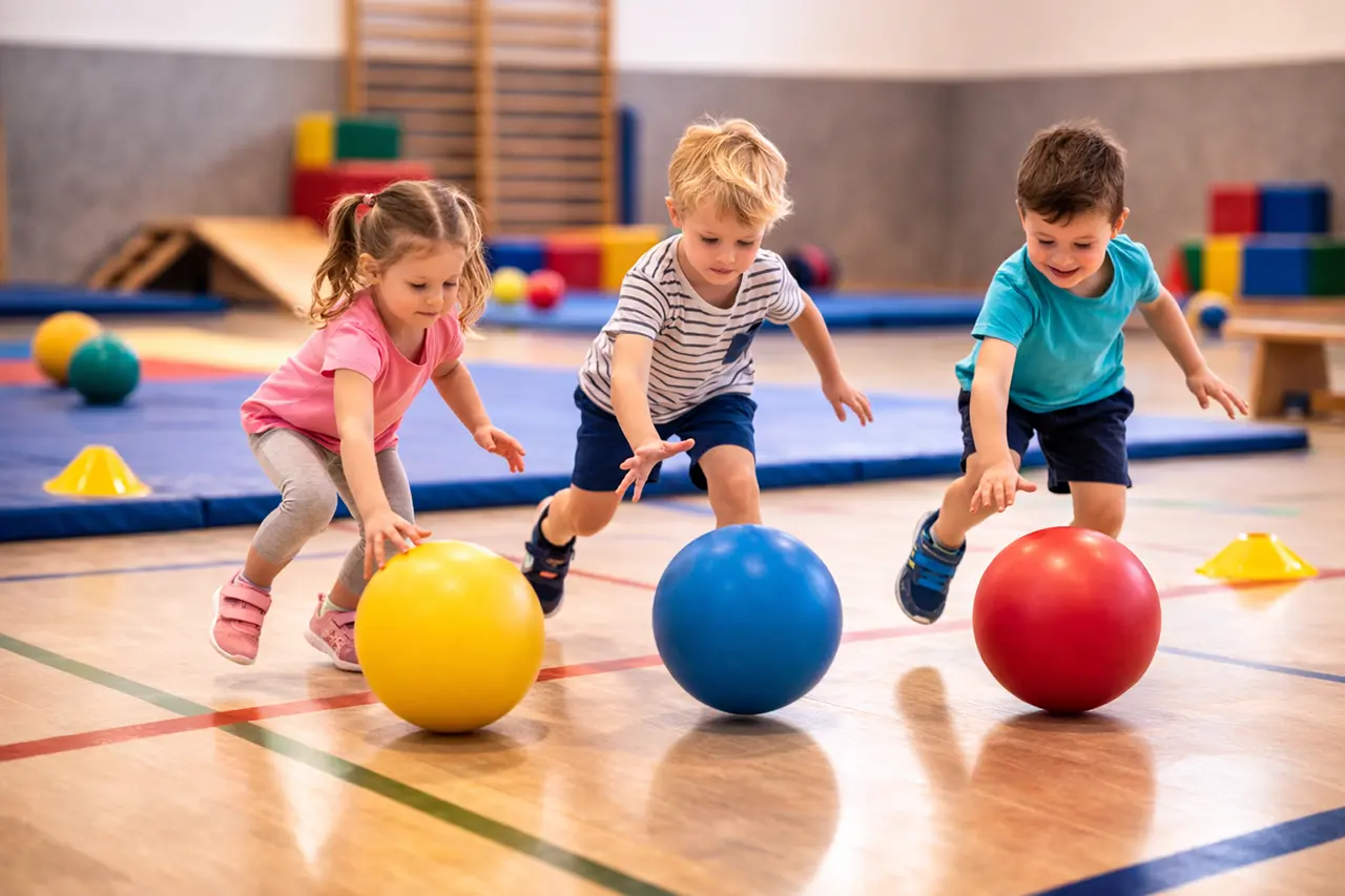 Die Ballschule bei den Sportkinder Berlin ist ein kindgerechtes Bewegungsangebot für Kinder im Vorschul- und Grundschulalter, das den spielerischen Umgang mit verschiedenen Bällen in den Mittelpunkt stellt. Die Kinder üben Werfen, Fangen, Dribbeln und Rollen, entdecken kleine Teamspiele und koordinative Übungen und entwickeln dabei Hand-Auge-Koordination, Gleichgewicht und Körperkontrolle. In einer motivierenden und wertschätzenden Umgebung lernen die Kinder, Erfolge zu feiern, Selbstvertrauen aufzubauen und Freude an Bewegung zu entwickeln, während gleichzeitig soziale Fähigkeiten wie Fairplay und Teamgeist gestärkt werden.