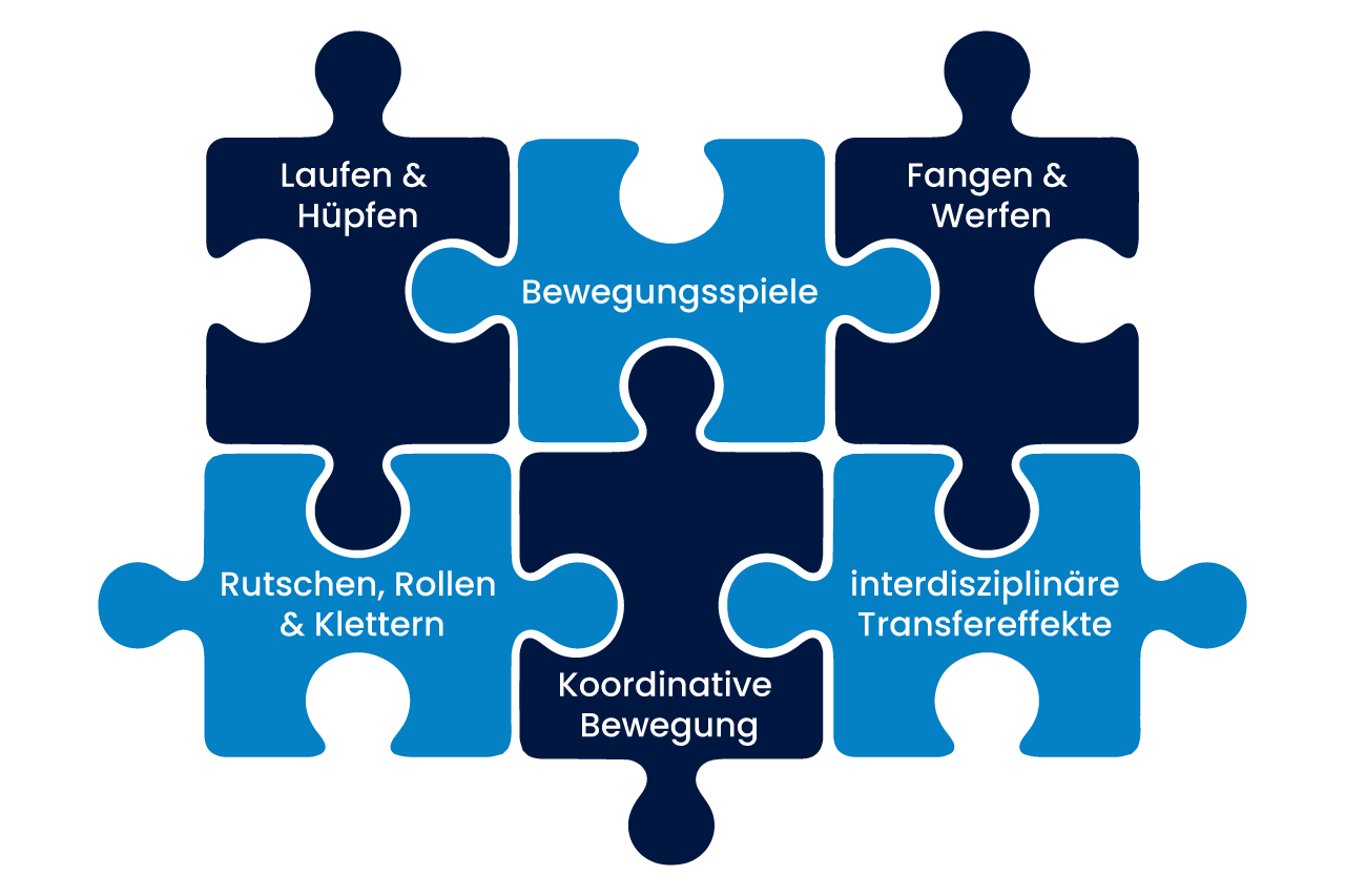 - Aufbau grundlegender motorischer Fähigkeiten (Laufen, Springen, Werfen, Klettern, Balancieren)