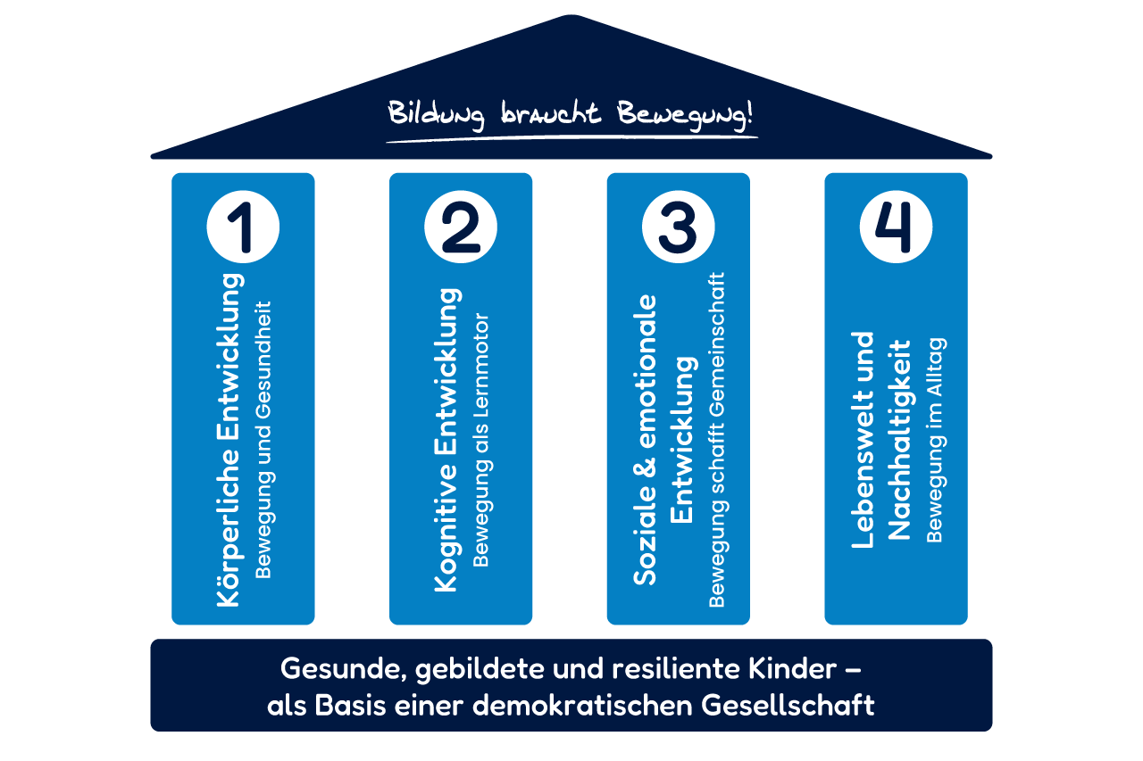 Bewegung ist die Basis eines gesunden und glücklichen Aufwachsens. Sie stärkt Körper, Geist und Seele, unterstützt das Lernen und hilft Kindern, sich selbst und ihre Umwelt zu begreifen.